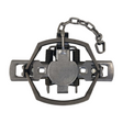 The 550-CL has an outside jaw spread of 5 1/2” and an inside jaw spread of 4 3/4”. The cast jaw face is 3/8” thick. We’ve installed a Paws-I-Trip pan system and stainless steel night latch dog. Pan tension out of the box on the two coiled version runs an average of 2.5 pounds which we have found to be a very good number for a multi species trap. Pan tension on the four coiled model runs an average of 4.1 pounds. Waxing will decrease pan tension by about .3 pounds. This trap is fast and excellent results are obtained using it two coiled. We do not recommend using the 4-coiled version if grey fox is your target animal. #3 chain, crunch proof swivels, and a 2-piece gusseted frame for strength and reliability. The 550 is an excellent live market trap, as well as the trap to use on a mixed specie line. Small enough for fox and tough enough for the nastiest coyote.